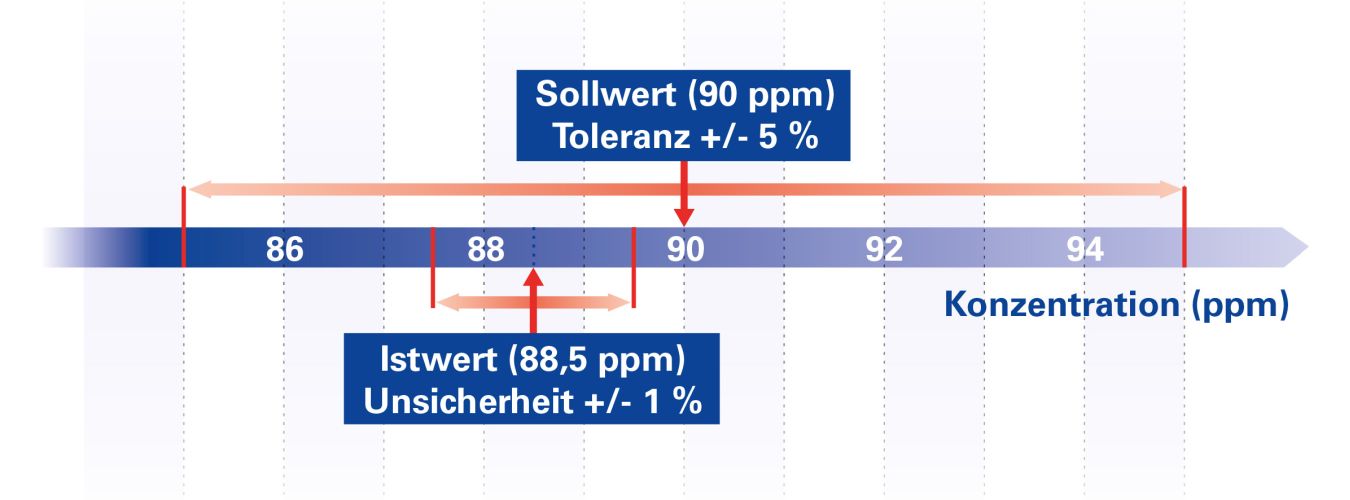 Toleranz, Unsicherheit und Stabilitätsdauer eines Gasgemisches