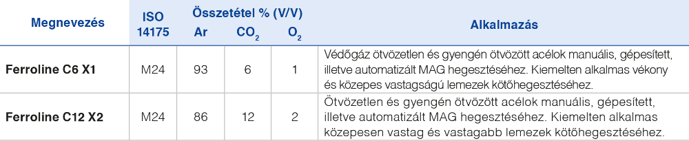 FERROLINE – hegesztési védőgázok ötvözetlen és gyengén ötvözött acélok MAG hegesztéséhez