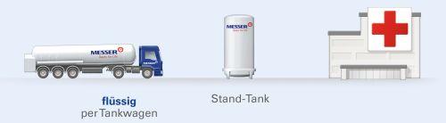 Für den mittleren bis grossen Bedarf ist eine Versorgung von Sauerstoff in flüssiger Form